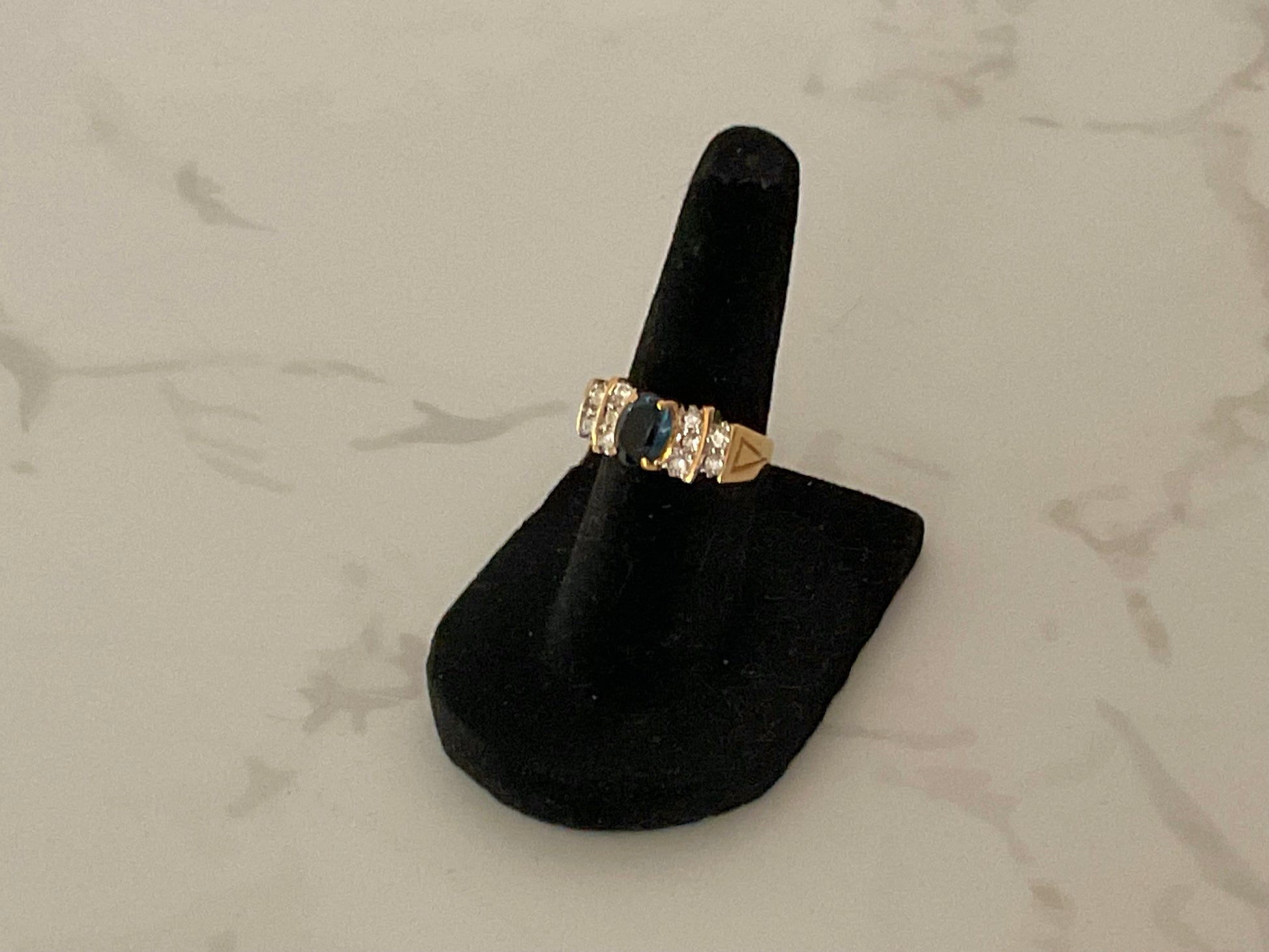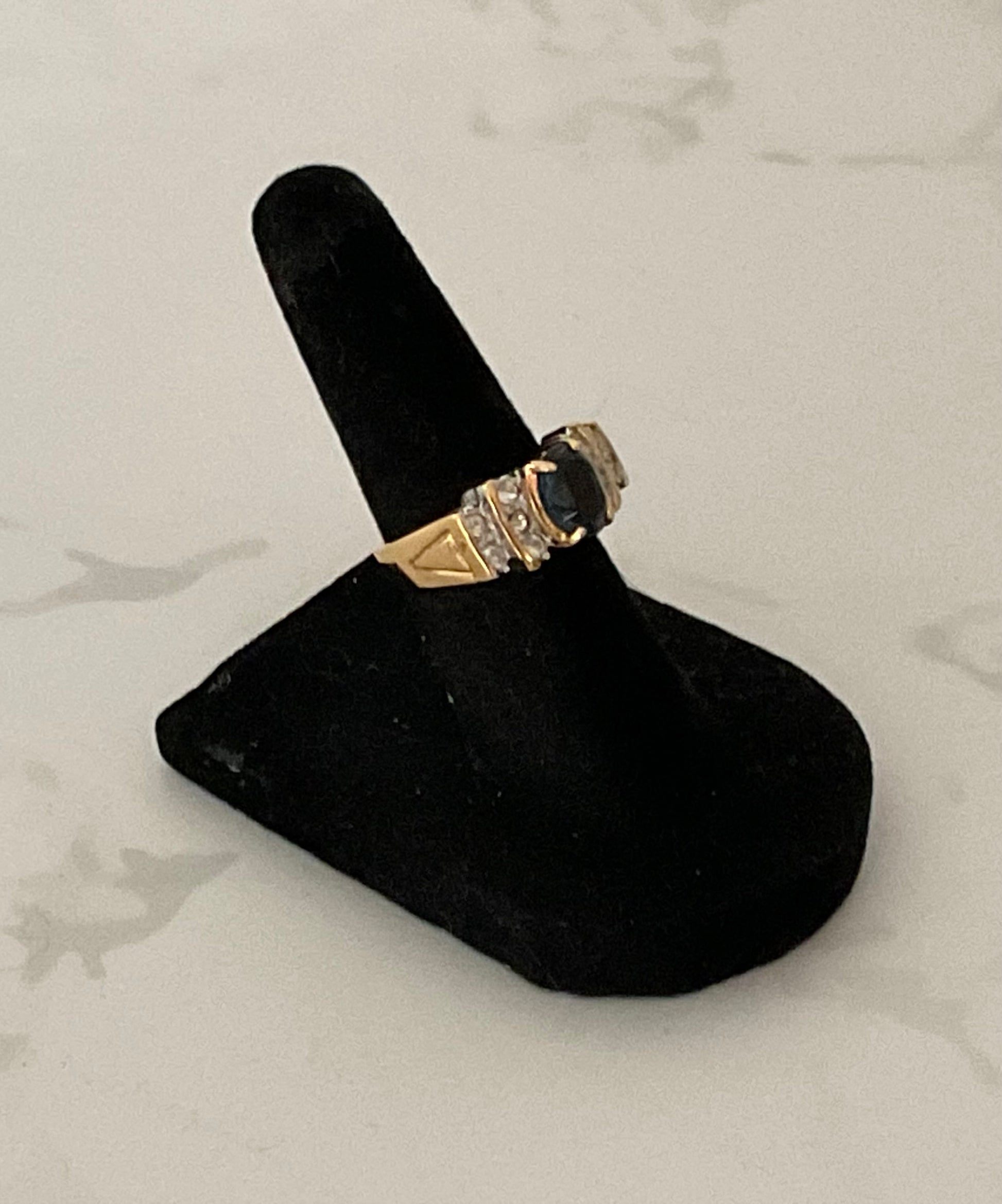Vintage Blue Sapphire & Crystal Sterling Gold Ring