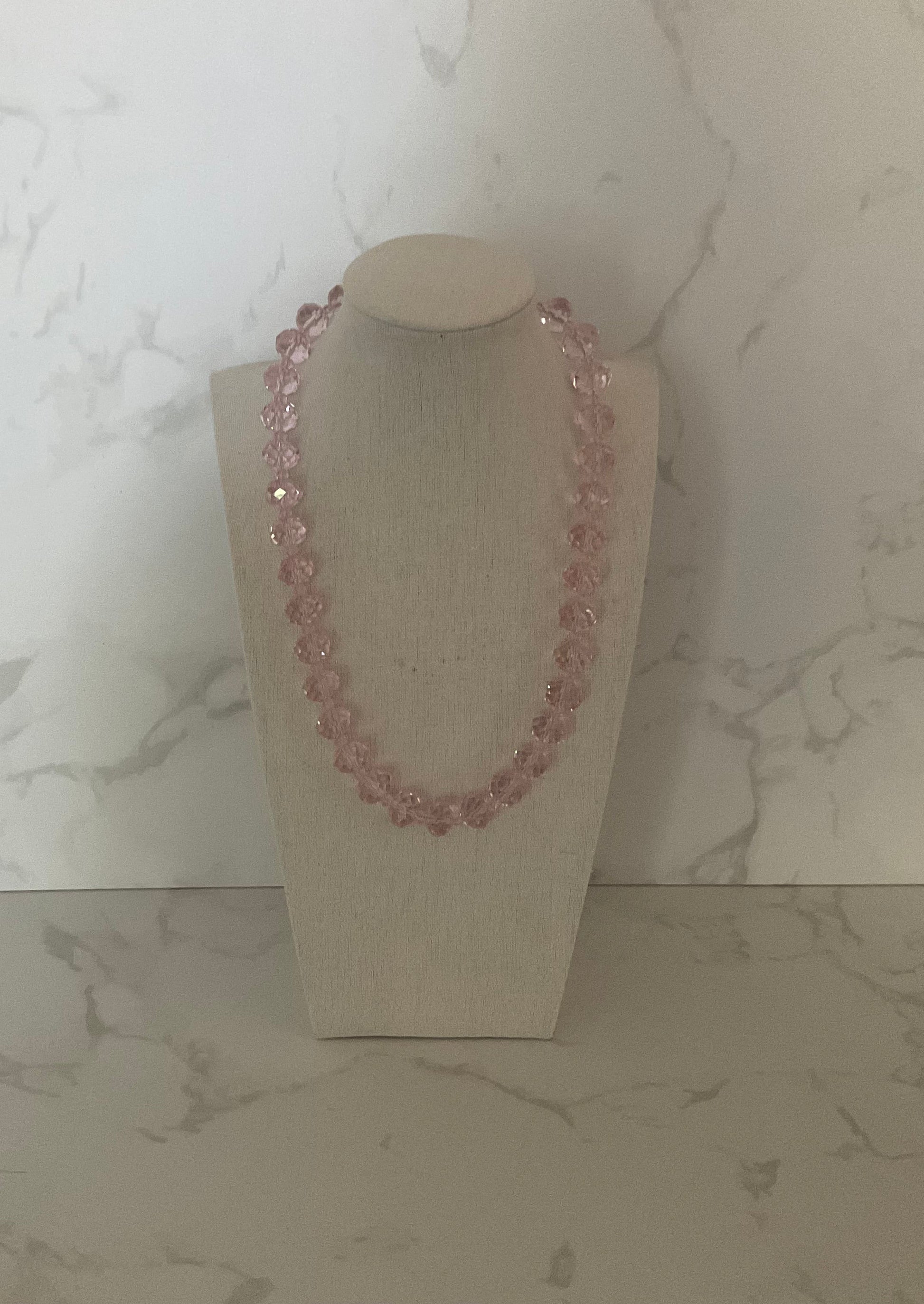 Vintage Multi Faceted Pink Glass Necklace